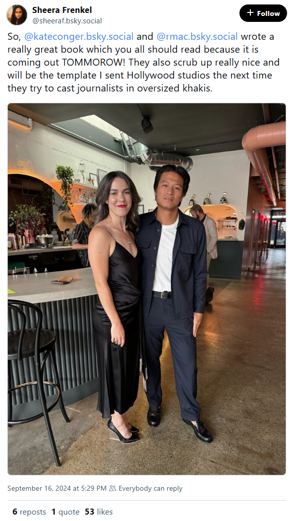 Today I have a special treat in store: We are joined by intrepid New York Times reporter Kate Conger, whose book Character Limit (co-written with intrepid New York Times reporter Ryan Mac) is out this week. Character Limit traces the disaster circus that ensued when Elon Musk joked about buying Twitter, and then found out Twitter could sue him if he did not follow through with his joke, and had to buy Twitter even though he did not want to. And that was just the beginning! I have not yet finished it, but esteemed friends of the newsletter have, and I’m assured that the reporting takes you into so many rooms with Elon, giving the reader a true front-row seat to his idiocy.