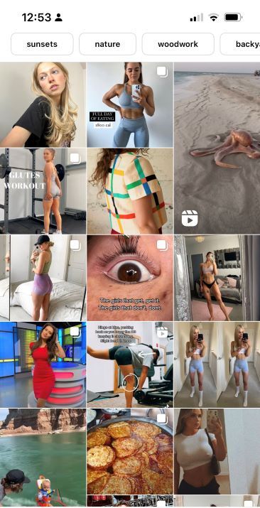 I will say, there has been a STARK change in the explore page on my secret experimental Instagram account that is positioned for all kinds of wellness-pilling. It used to be tons of crash-diet trash (and for some reason lots of weird makeup-doing clips). Now it’s lots of muscular women, lots of weight-gain posts. Mostly white women. Still lots of stuff that I think might invite body envy, but it’s not F-Factor diet type of garbage like it used to be.