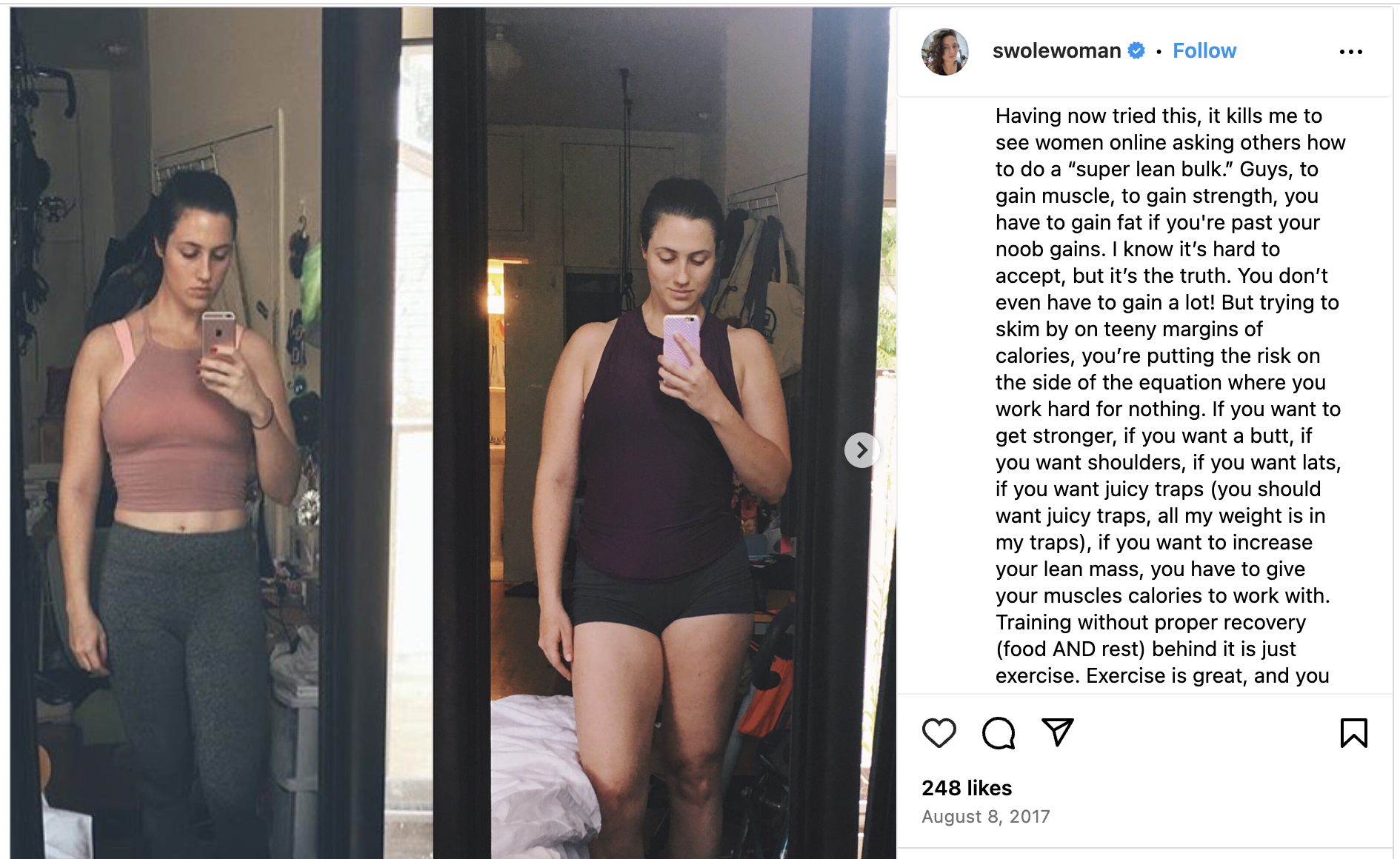 But [cups your face in my hands] both of these are okay. You will gain back that pound or so of muscle. You honestly won’t notice the difference between losing like, 10 vs. 12 pounds of body fat. The odds that you will do this to perfection are low, but perfection is not and should not be the goal.