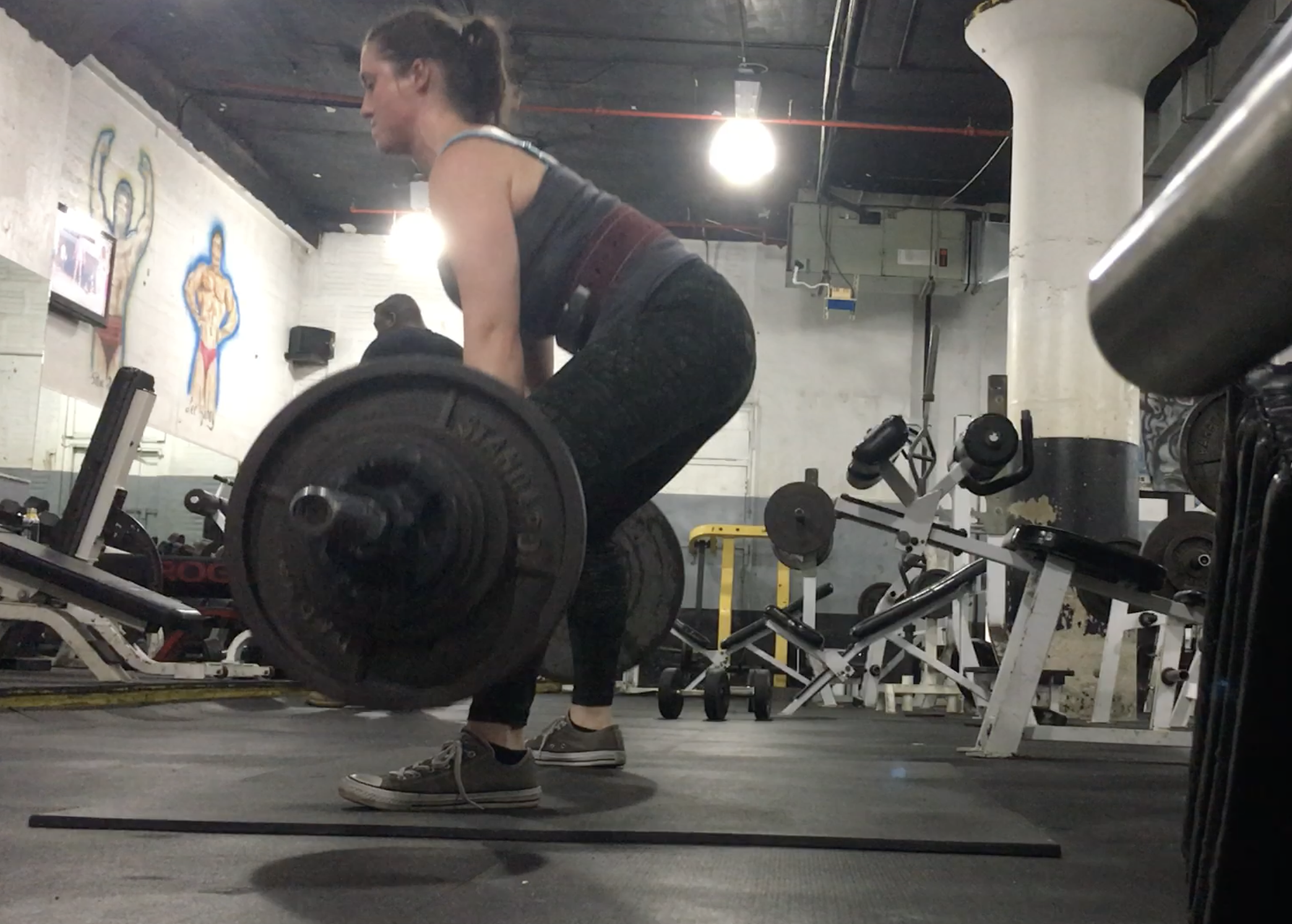Old and new converse, circa 2016; selfie after my first bulk, 2016; deadlifting in Richie's gym (featured prominently in A Physical Education), 2017