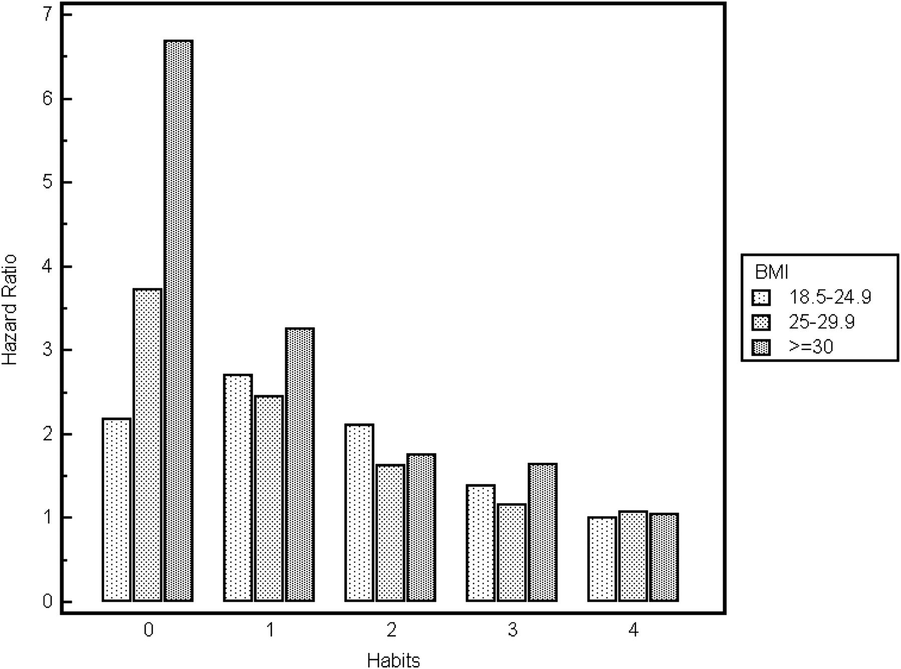 It is especially untrue when we control for basic healthy habits like smoking, diet, drinking, and exercise. A skinny person who never eats a vegetable, drinks, smokes, and doesn’t exercise has a higher mortality risk than almost anyone of any weight who does the opposite. Even anyone of almost any weight who checks only two of those healthy-habits boxes has a lower mortality risk than the skinny person who checks zero.